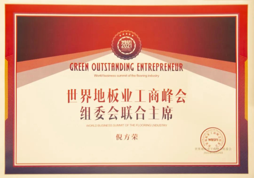 為表彰世友木業在地板產業綠色發展上積極帶頭的貢獻,本次峰會上,世友木業獲授《世界地板業工商峰會組委會聯合主席證書》,世友木業董事長倪方榮先生登臺領獎,這是對世友二十載耕耘綠色發展的肯定和勉勵,也讓世友的行業標桿優勢近一步擴大。